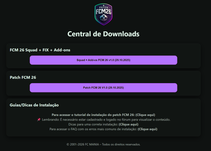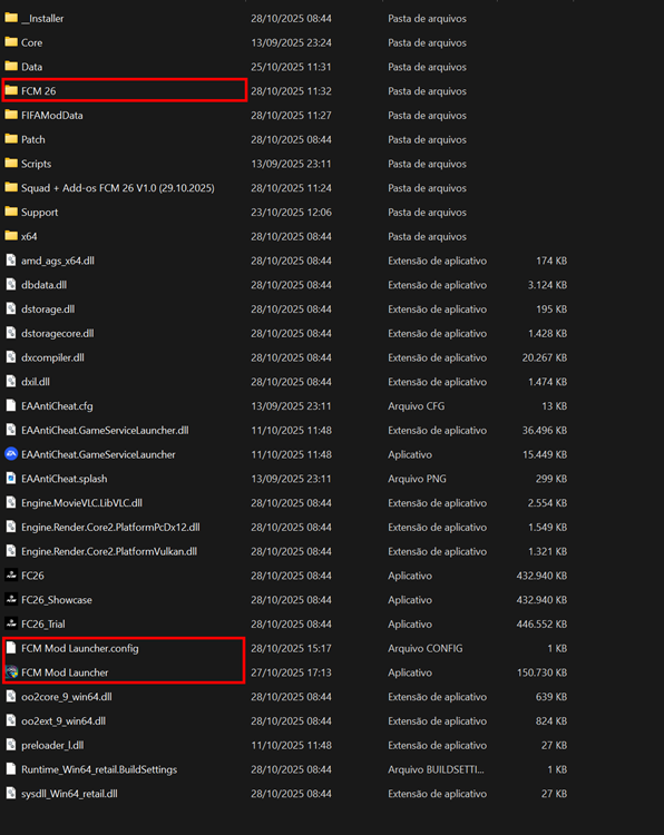 - Ao executar o patch, sempre inicie o "FCM Mod Launcher" diretamente da pasta raiz do seu FC 26.