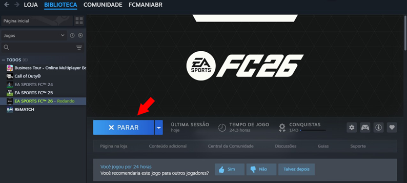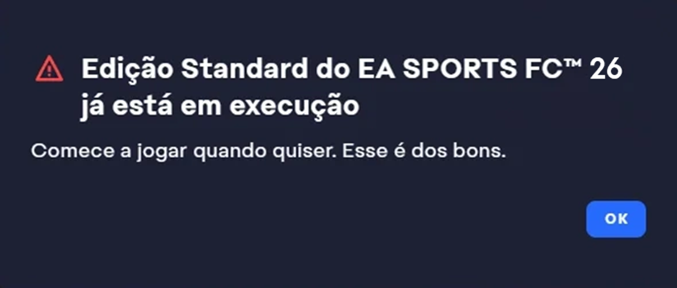 - Verifique se o jogo EA SPORTS FC™ 26 aparece como "Rodando" (mesmo que ele não tenha aberto ainda).