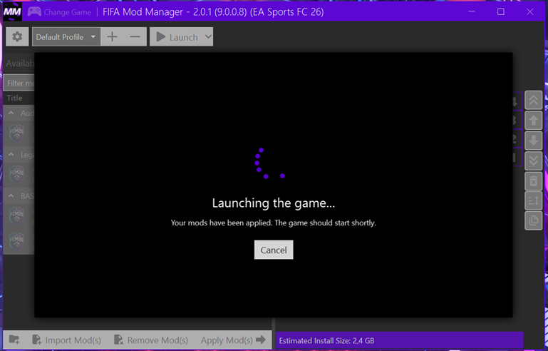 - Após isso, volte ao FIFA Mod Manager.