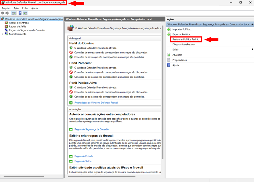 - Certifique-se de que o Firewall do Windows esteja habilitado antes de realizar esses procedimentos.
