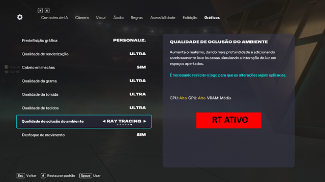 Obs.: Não deixe a opção de RayTracing ativada no jogo. Feche o jogo e entre novamente, e a tarja desaparecerá.