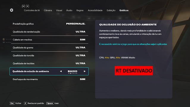 - Na parte inferior -- Qualidade de oclusão do ambiente -- "Alto/Médio/Baixo".